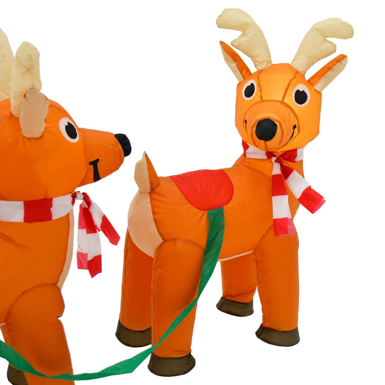 This 10ft long inflatable outdoor Christmas decoration is sure to give your garden the wow factor. The Christmas inflatable features Santa sitting in his sleigh filled with presents, with 3 reindeer in red and white scarves ready to fly all over the world.