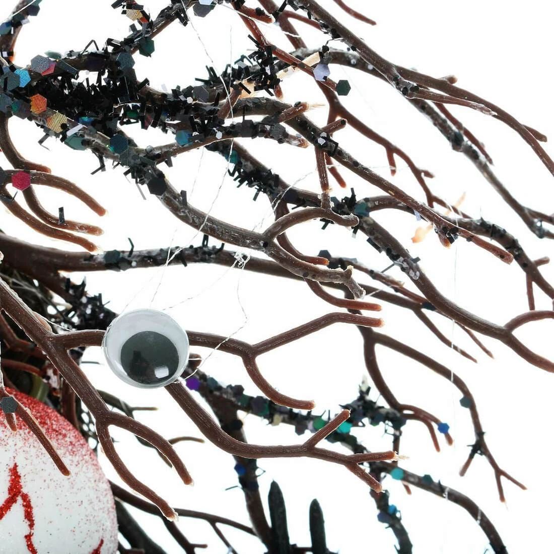 The wreath has an artificial base, plastic twig decorations and polyfoam eyeballs.