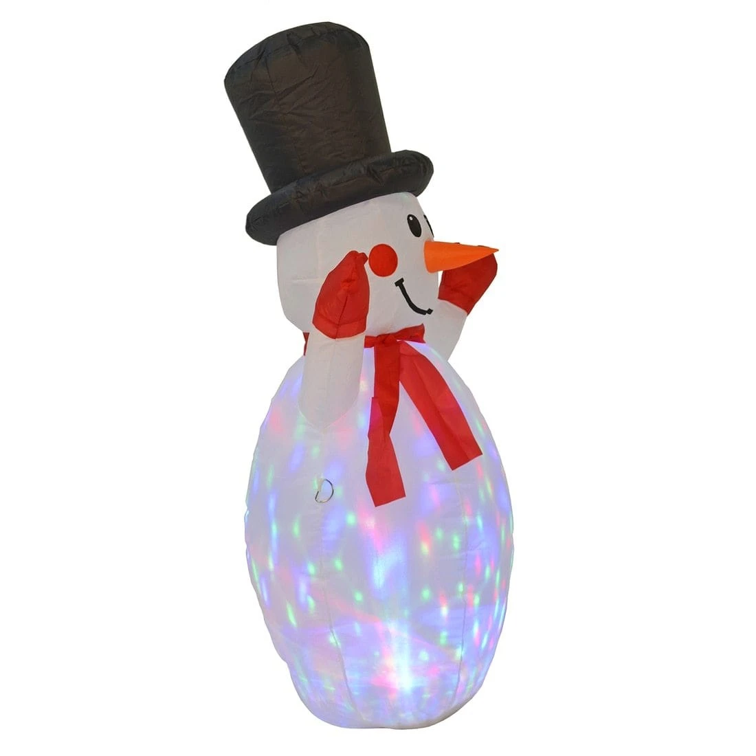 Decorate your garden this Christmas with this jolly 4ft inflatable snowman from Mr Crimbo! The snowman is styled with a red scarf, black top hat and red gloves, and will light up any outdoor space over Christmas with flashing disco lights. The snowman inflatable has a non-replaceable LED light in the head to give a soft glow and illuminate your display. A brilliant festive decoration for gardens and commercial spaces.