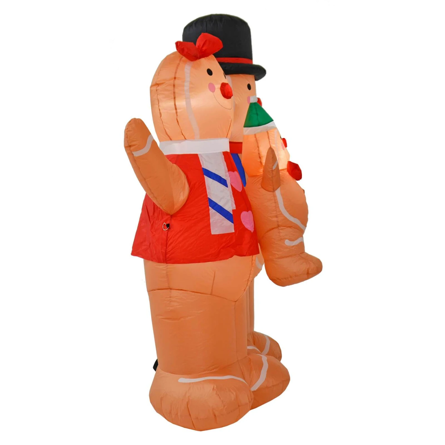 This 6ft tall light up inflatable Christmas decoration features dad wearing a black top hat, mum with bow and baby with green elf hat. The xmas inflatable decoration is lit by bright white LEDs. Suitable for indoor and outdoor use.