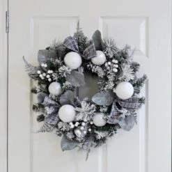 The Christmas wreath hook has a silver tree with sparkling diamante bauble decorations and star on top. The 35cm long Christmas hook will fit over most interior and exterior doors with a max thickness of 41mm (1⅝”)