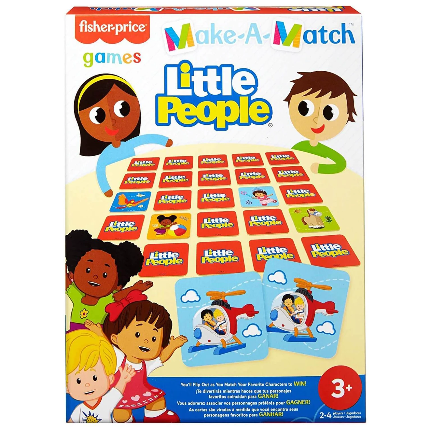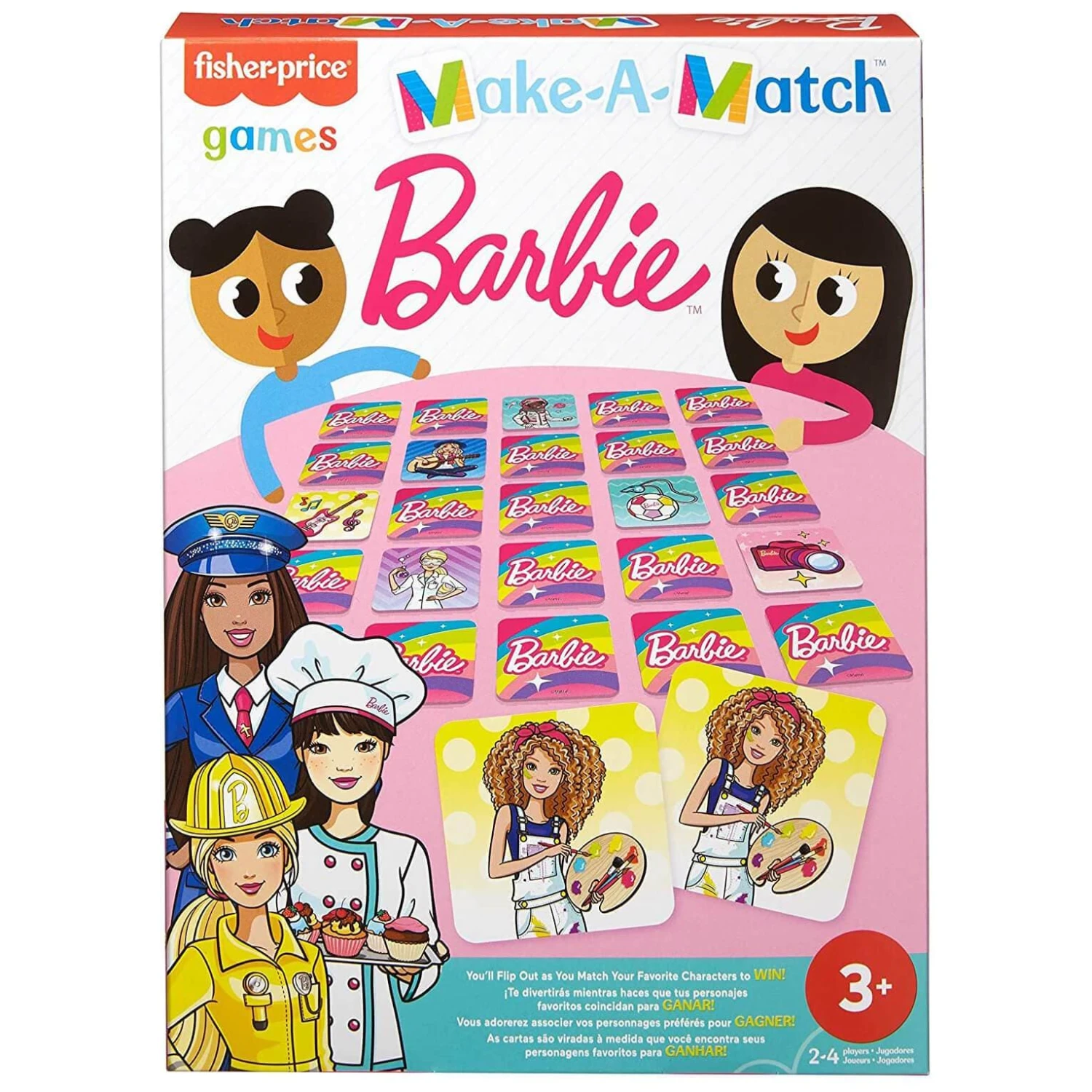 Can you find the matching cards? The player with the most card tiles wins. Match bonus cards for extra points! Choose from Little People or Barbie themes. A great family game for 2-4 players. Suitable for ages 3+.