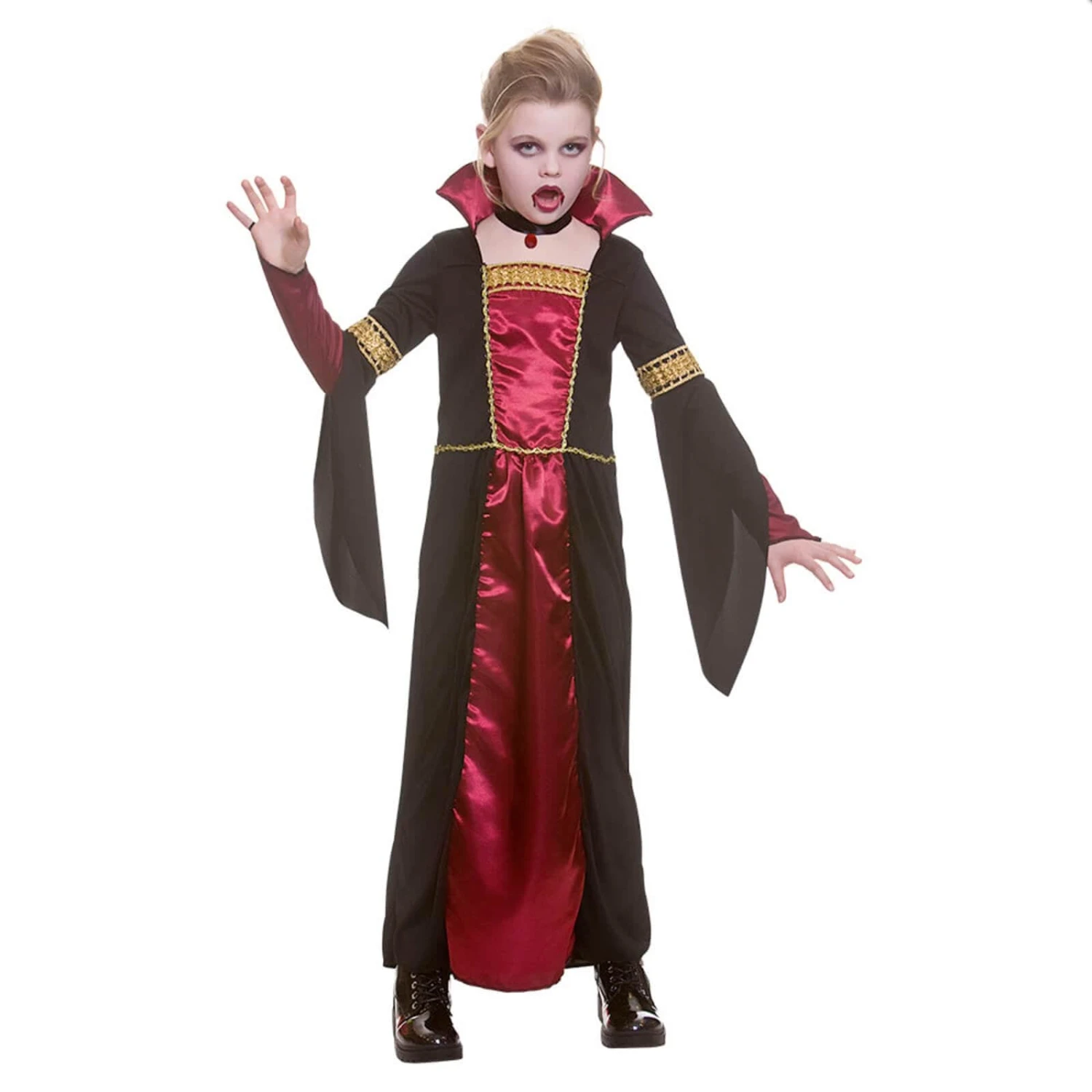Your little angel will be the best dressed Vampiress at the party in this medieval fancy dress costume for girls.