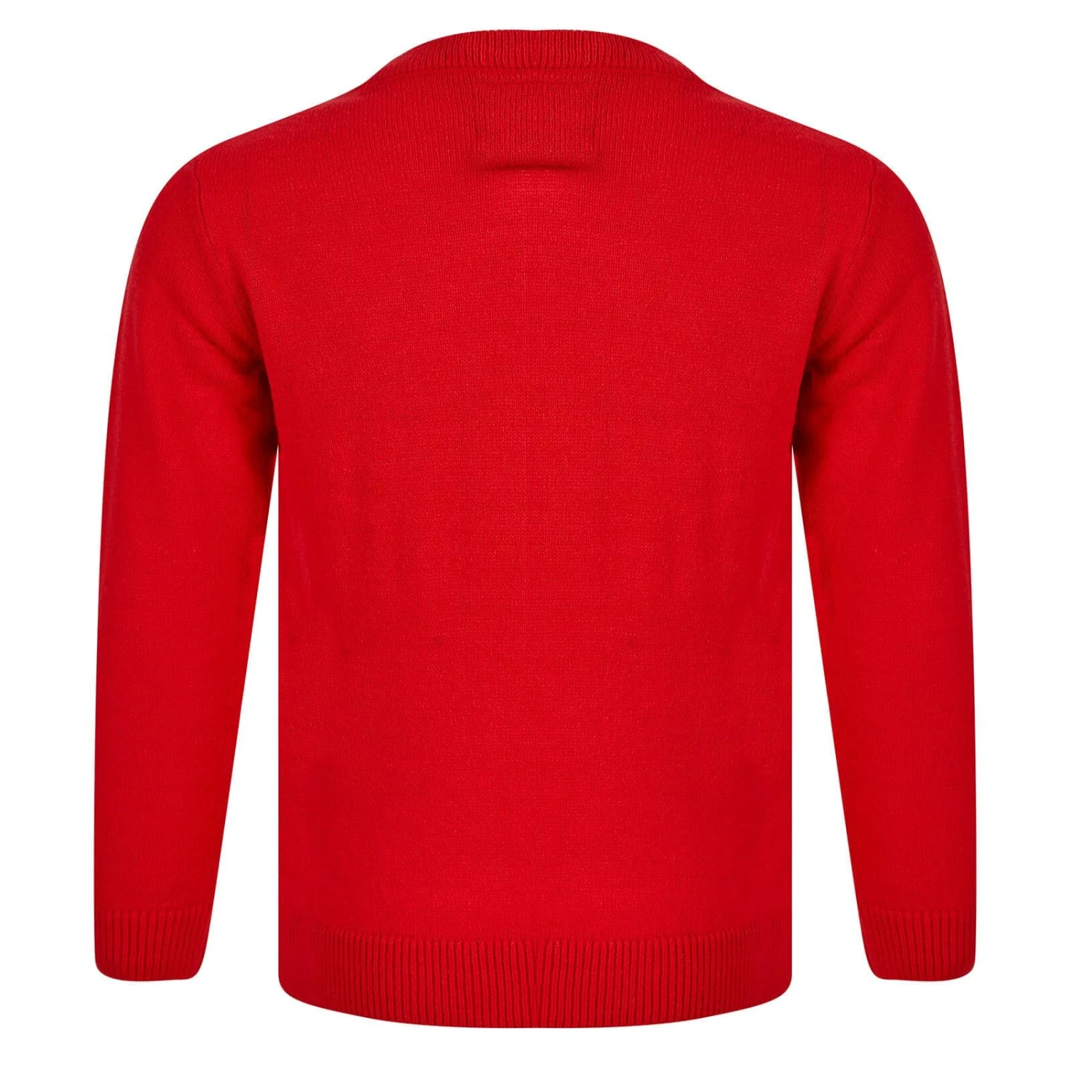 Your little one will love wearing this cute Christmas jumper over the festive season. The xmas sweater features Rudolph the reindeer with red sequin nose and one eye open, wearing a red sequin Santa hat and holding a candy cane. The soft knit, crew neck, red Christmas jumper for children is available in child sizes from age 4 to 12. Perfect for family seasonal celebrations, Christmas Jumper Day and a great gift idea!