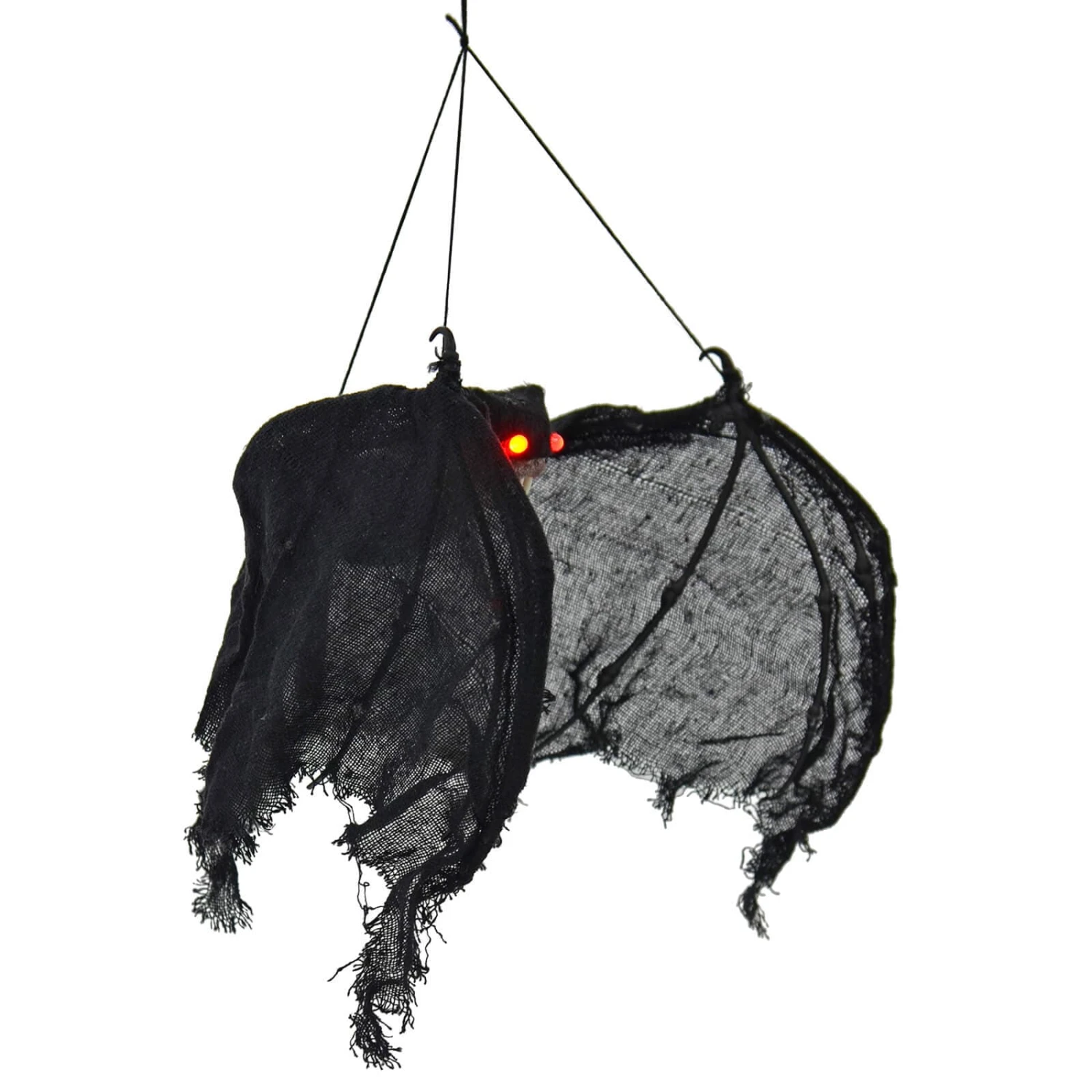 The large black bat has light up red LED eyes. The wings are made from a plastic skeleton with black fabric covering. With a wing span of 73cm (29″) it’s sure to cause a flap! Suitable for indoor use only.