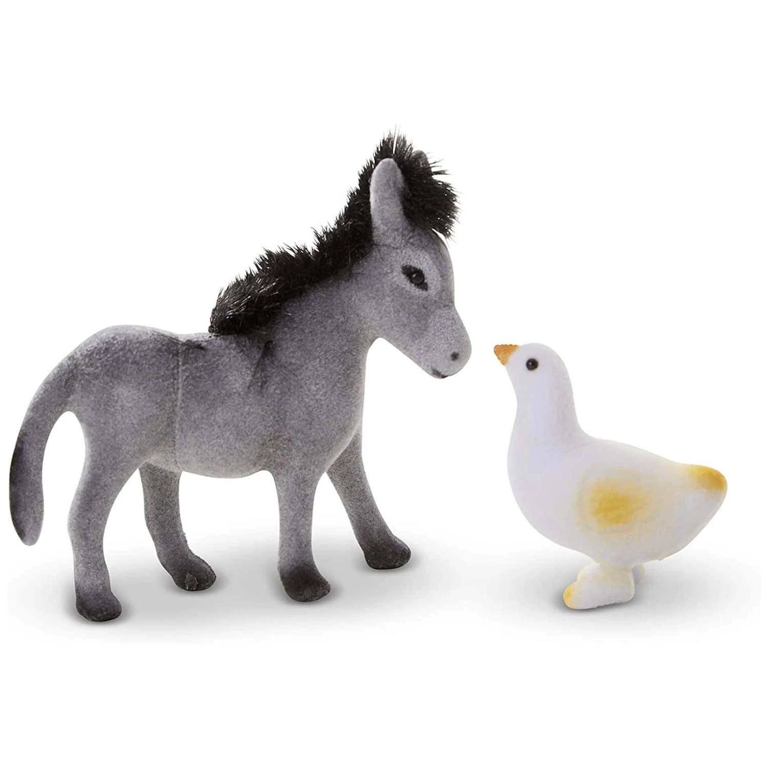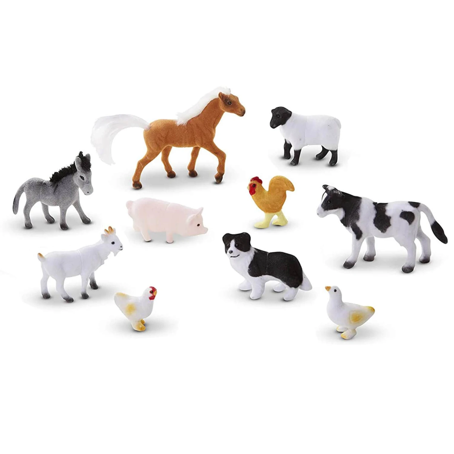 The Melissa & Doug Farm Friends is a collection of 10 felt-covered miniature models of barnyard buddies of all sizes. From the majestic horse with a flowing mane to the adorable web-footed duck, these animal figures will help your little one create adventures on the farm.