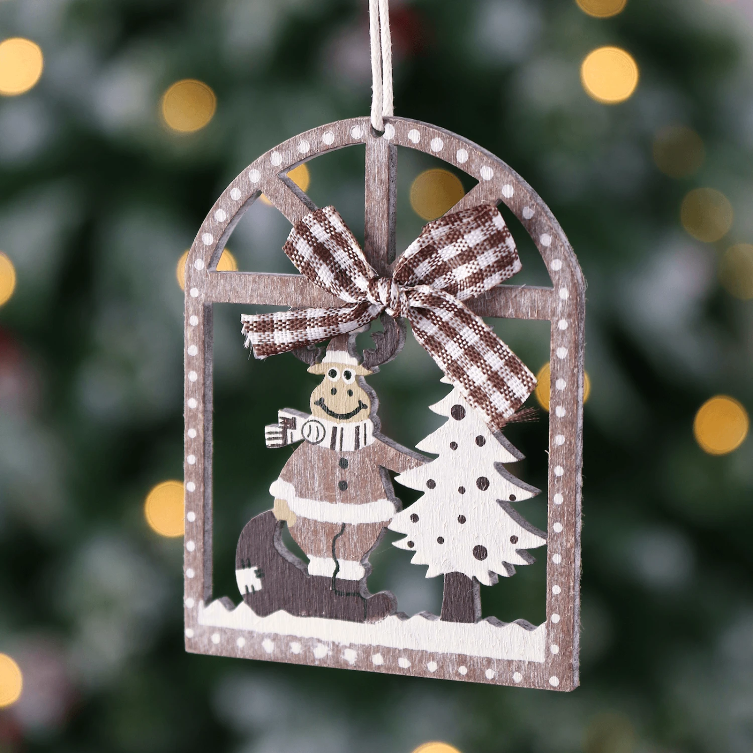 These versatile wooden tree ornaments will look amazing on your tree over the festive period! Each decoration is styled with a neutral hand painted finish, neutral gingham bow and features a festive reindeer and Christmas tree design in a window shape. The pack of 6 ornaments comes in a wooden box – perfect for storing the ornaments after use or presenting them as a gift. Mix and match our full range of tree decorations!