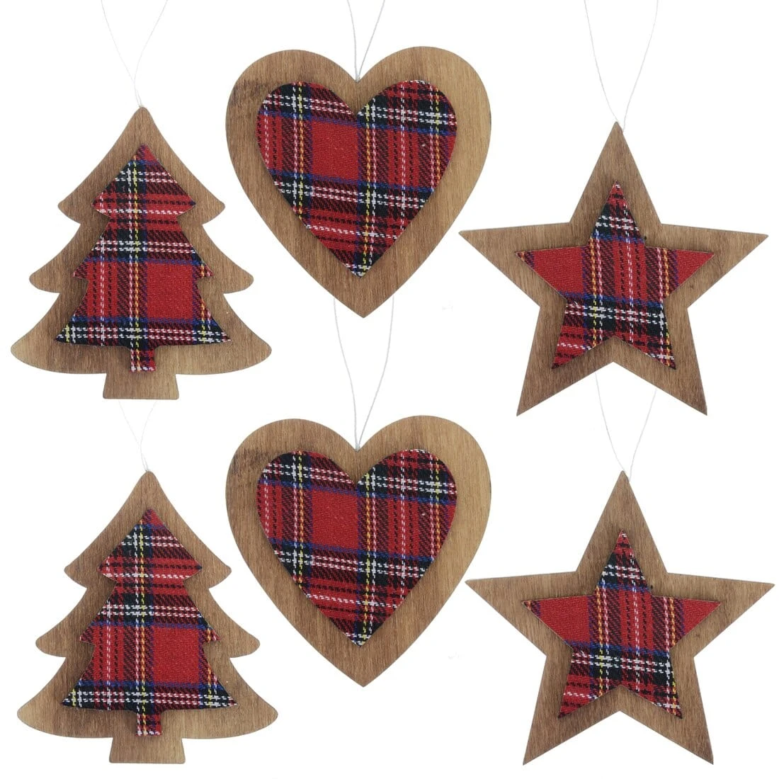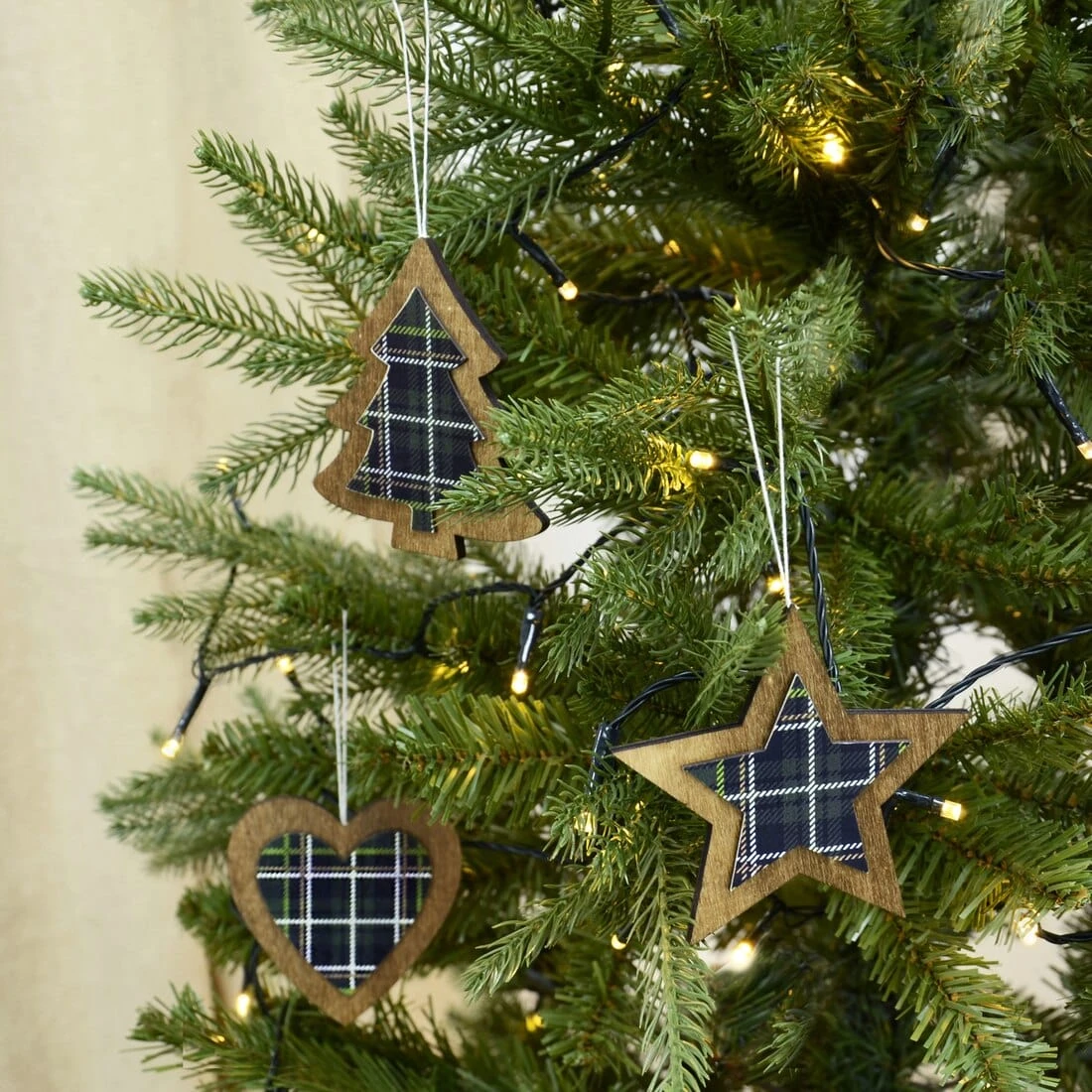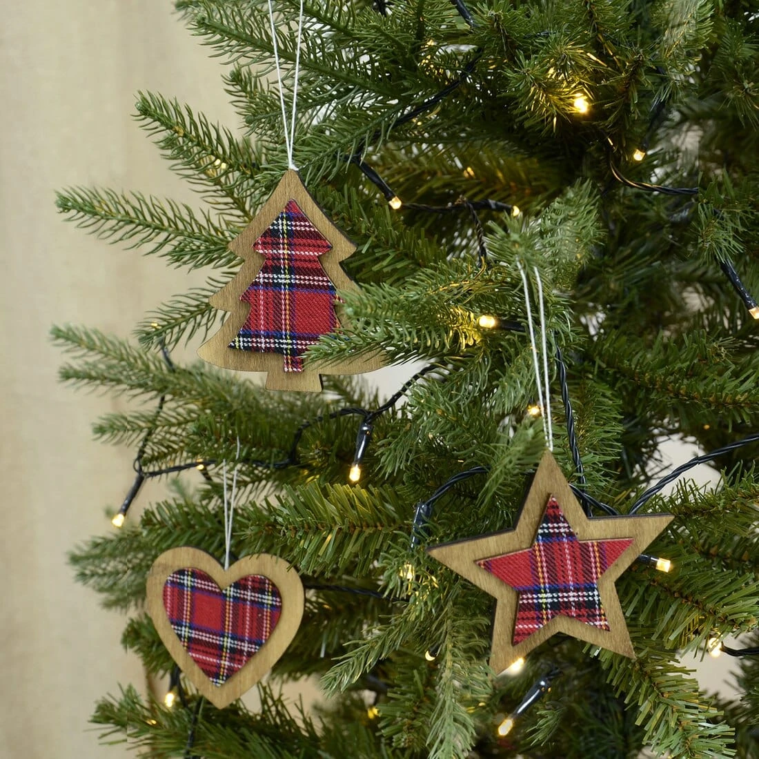 If it’s a traditional part of your preparations for Christmas then you will love these vintage style tartan wooden decorations. Made from 2 layers of lightweight wood: the base is a natural finish, the top layer is printed with a traditional tartan design. Each decoration includes a thread loop for hanging on your tree branches. Don’t you just love the pine resin scent of a real tree?