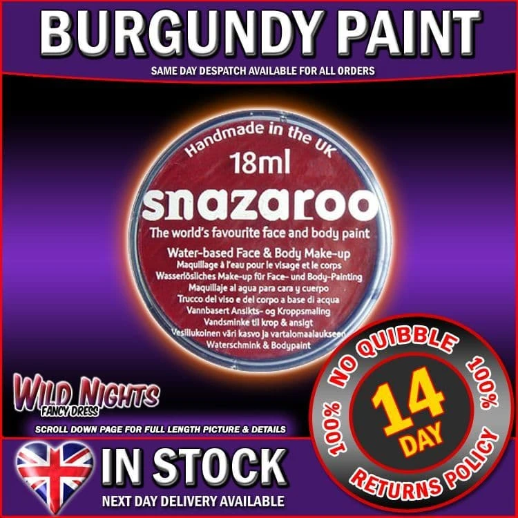 MAKE UP – SNAZAROO FACE PAINT BURGUNDY – FANCY DRESS COSTUME ACCESSORIES