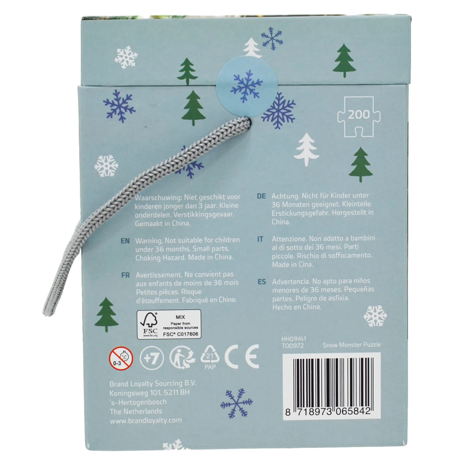 Piece together a heart warming Christmas scene with this colourful jigsaw puzzle. The image shows a Snow Monster at a camp fire with a squirrel, birds, fairy lights, snowman, holly, snow covered pine trees and more.